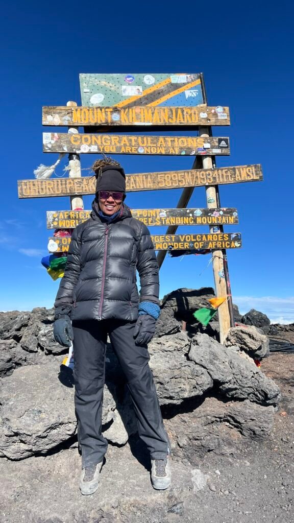 A escalada do Everest começou em abril e eu cheguei ao topo no dia 23 de maio de 2021. Essa conquista é muito representativa. Eu me tornei a primeira negra latino-americana a chegar no topo do Everest, isso significa que outras também podem chegar. O meu objetivo não era ser a primeira, o meu objetivo era ser uma de muitas e só me interessa realmente falar desse projeto, ter executado esse projeto porque eu reconheço que a minha jornada pode transformar a vida de outras mulheres negras. Eu batalho, luto pra que outras pessoas negras ocupem esse espaço da montanha também que ainda é extremamente elitizado, que ainda é é extremamente seletivo do ponto de vista social e econômico. Recentemente, em novembro de 2024, eu consegui guiar, levar grupo de pessoas negras do Brasil ao topo da África, o Kilimanjaro, numa expedição que a gente chamou de expedição Sankofa. Houve muito impacto na vida dessas pessoas que estiveram comigo lá, e a gente é muito grato não somente pelo incentivo da minha própria empresa que patrocinou parte dessa expedição, mas também da empresa Move, que foi a outra patrocinadora. Teve uma marca apoiadora em equipamentos, que foi a Decathlon, mas absolutamente eu tenho sentido muito orgulho e gratidão em perceber que a minha escalada não é só minha. A minha escalada é nossa, ela resulta em conquistas coletivas.