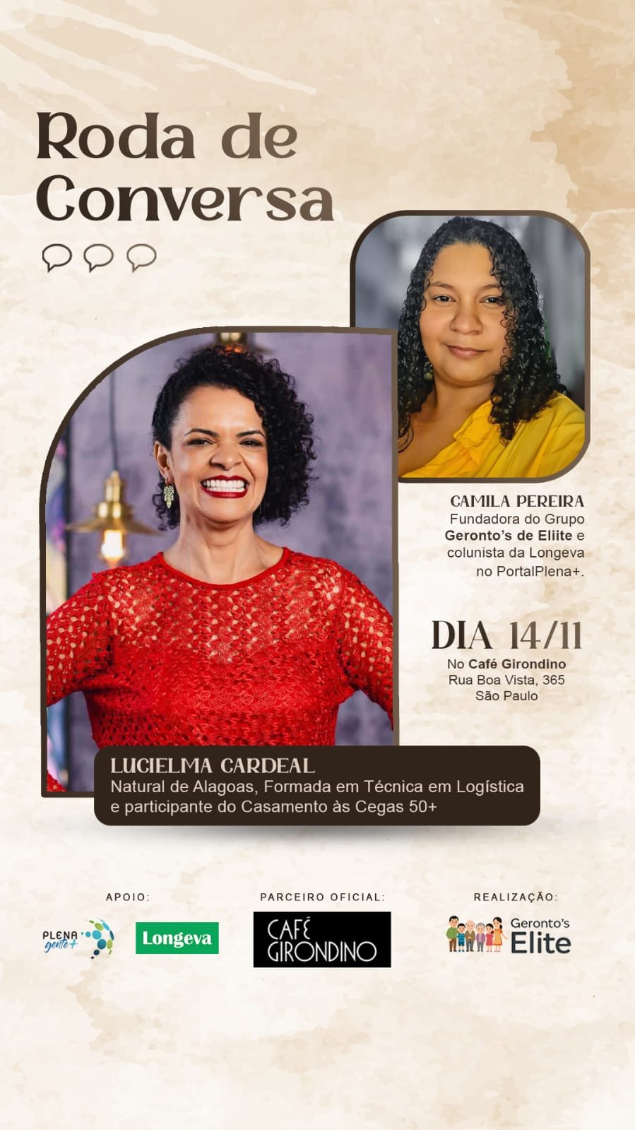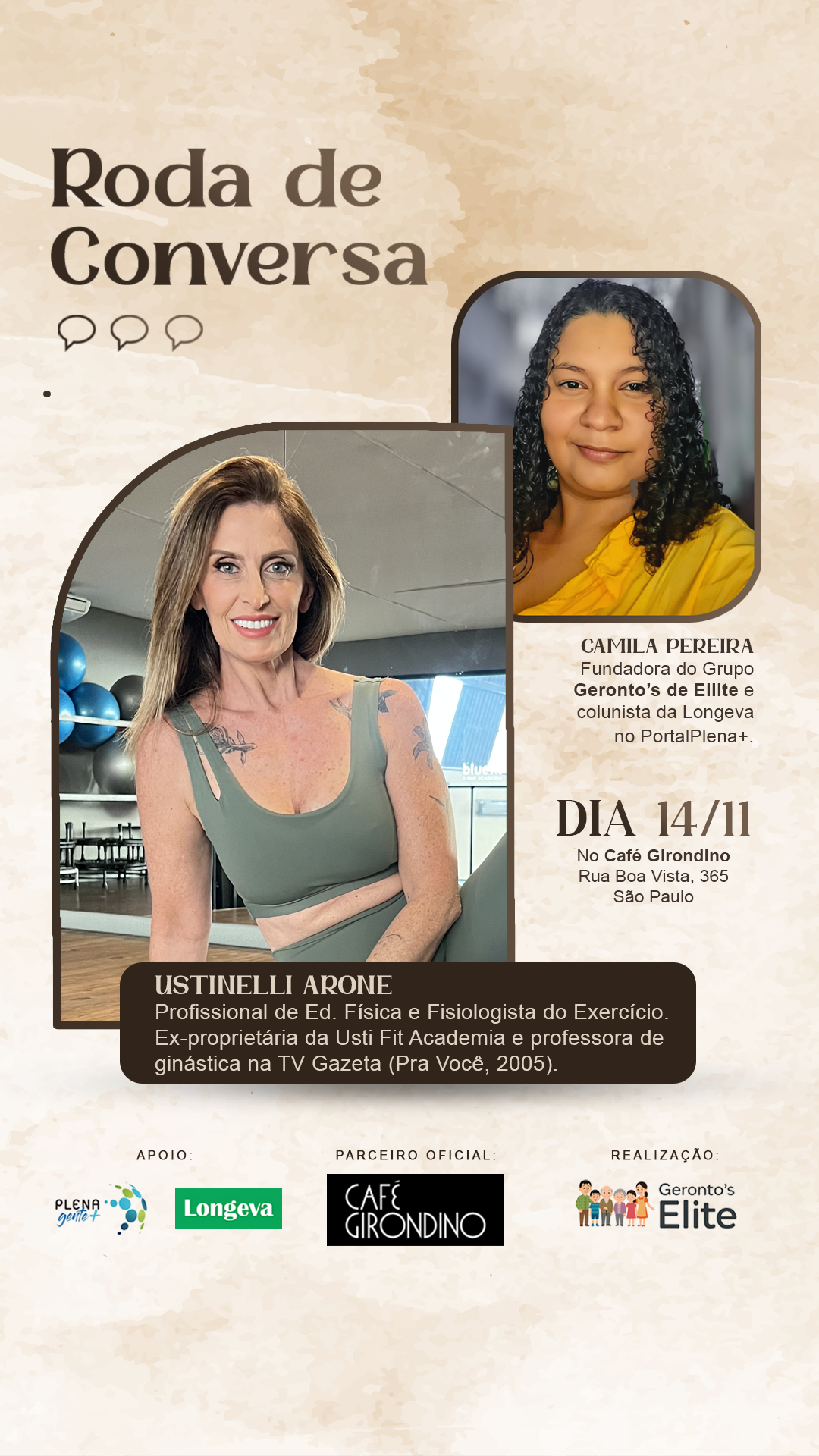 A ideia da organizadora, Camila Pereira, colunista do PortalPlenaGente+ é simplesmente reunir as participantes em um papo (o evento acontece entre 9h e 10h30 da manhã) agradável e amigável para falar sobre temas pouco abordados quando se trata de envelhecimento.