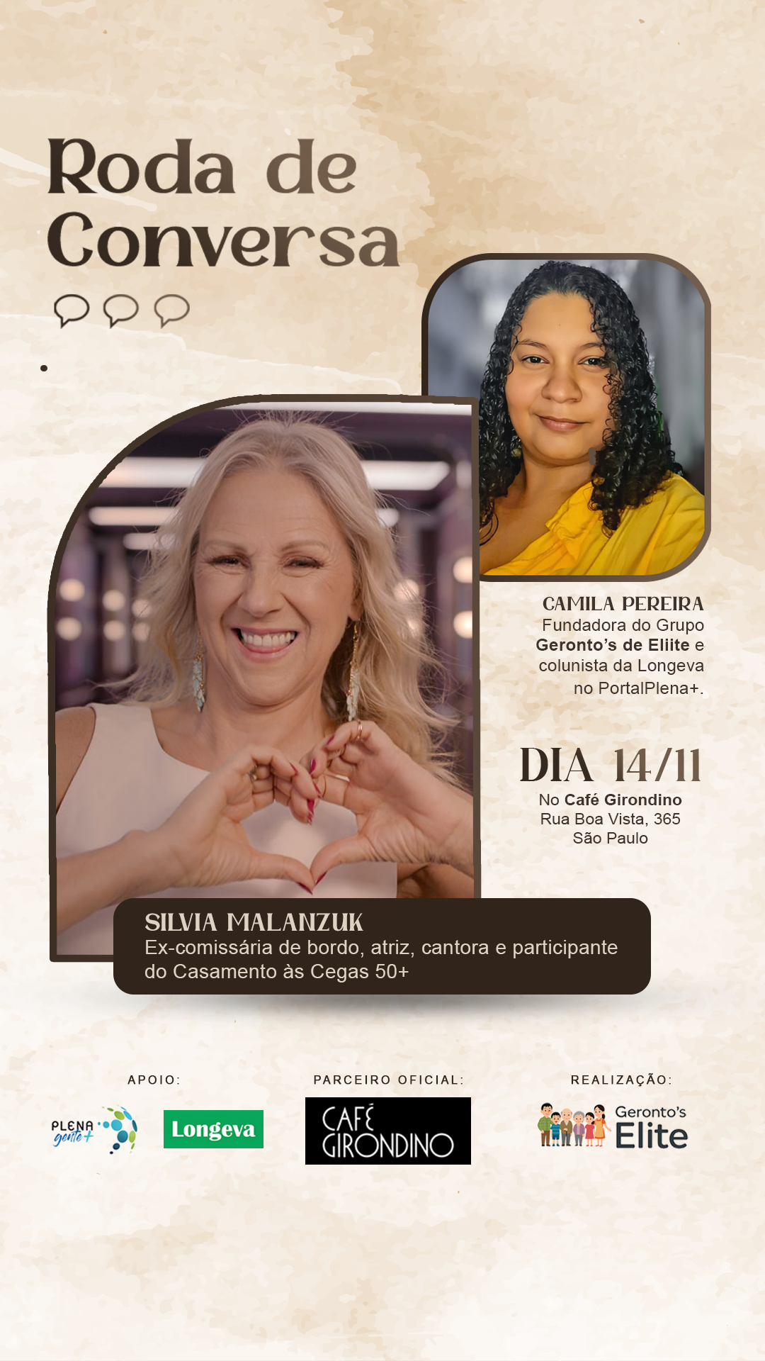 O Café Girondino será o palco de uma conversa muito interessante sobre maturidade, etarismo, envelhecer de bem com a vida entre outros temas urgentes.